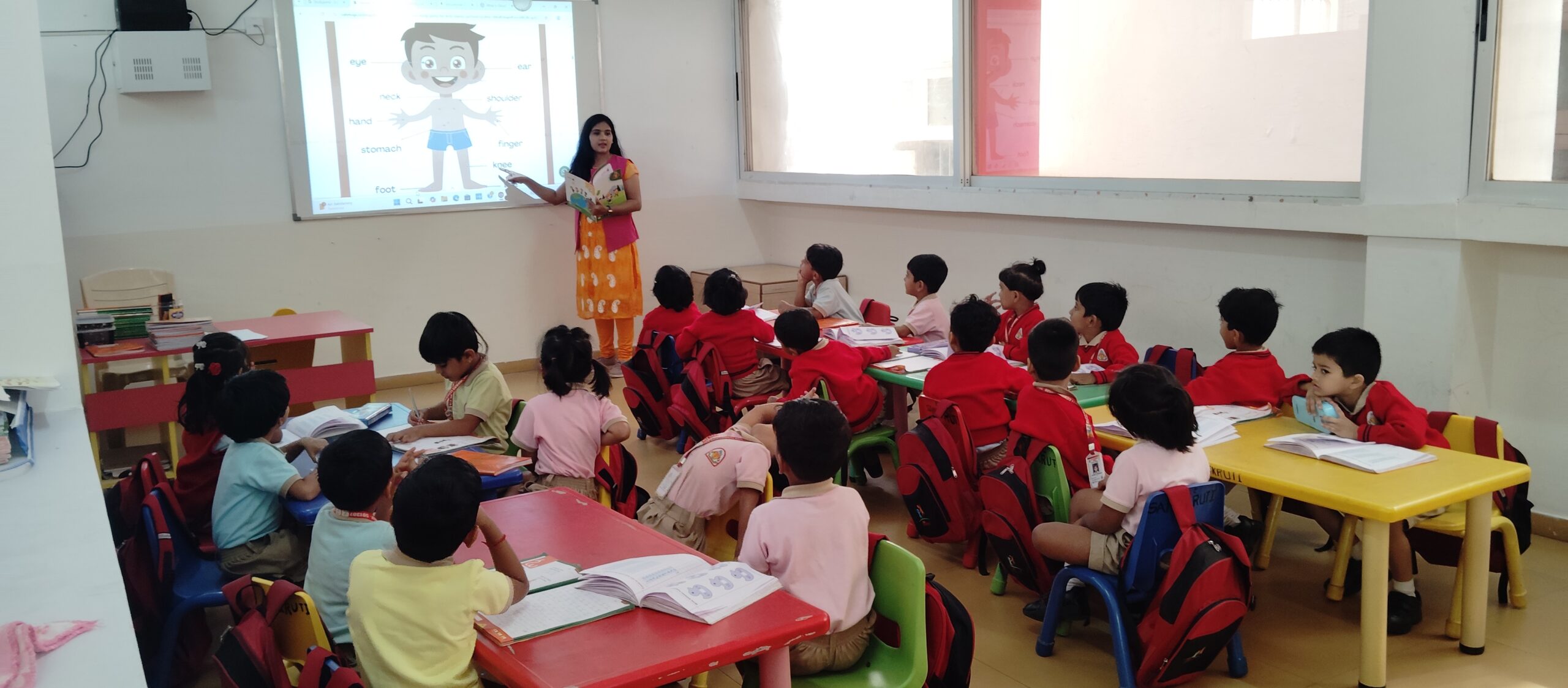 Welcome to LKG at our school, where children’s knowledge extends beyond the classroom and into their community. Our students are naturally inquisitive, continually looking for solutions and interacting with their friends and adults. They begin an exciting path of learning to read, write, and talk in English proficiently. Gone are the days of boring forms and colours; they are now nimble and energetic, eagerly embracing physical activity. Their imagination runs wild as they boldly express themselves via ideas, words, and imaginative storytelling.